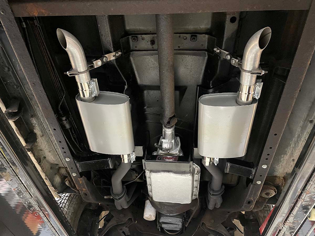 - This crossmember is a stock replacement designed to allow a dual exhaust system to be routed under the crossmember, allowing ease of header connection, while keeping the exhaust above the frame rails.