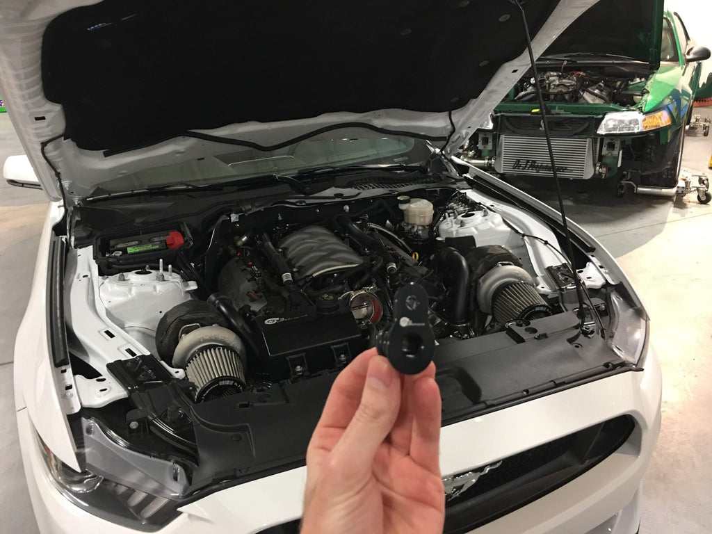 This is the new fitting we have developed to quick and easily tap for vacuum / boost using the stock intake manifold. This fitting is CNC machined, black anodized and o-ringed to make for a clean and simple install. As some know, its difficult to cleanly route your vacuum lines without reducers and multiple runs to the parts store. This fitting along with our On 3 Billet vacuum block will make plumbing your coyote vacuum lines after a turbo / supercharger install a breeze