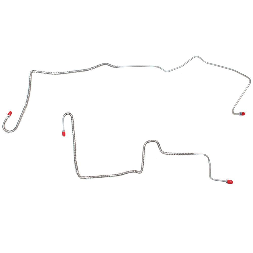 Our Rear Axle Brake Lines are mounted on the axle going to the left and right rear wheels. These will either connect to a caliper hose or thread directly into a wheel cylinder.
