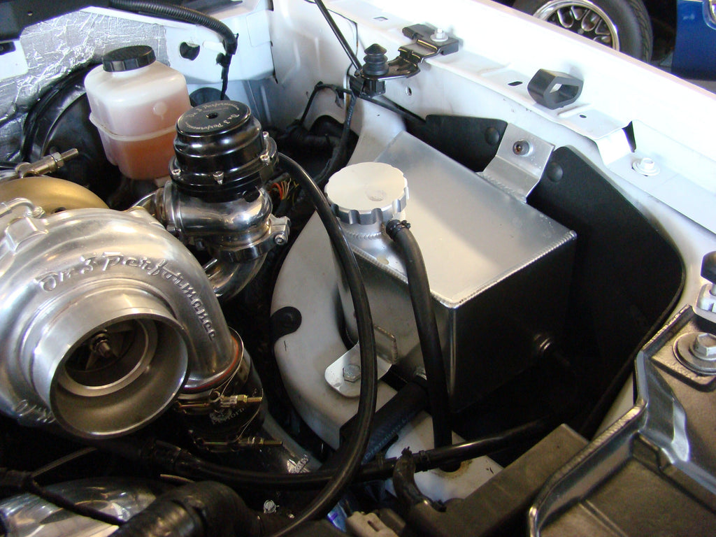 Instead of starting from scratch, we picked up our 5.0 Mustang intercooler and adapted it to our truck platform. This intercooler has been used on countless cars and we know it will support 1000rwhp while keeping IAT's in check. This is a large, 3.5" air to air core with integrated blow off valve flange into the core. It is a dual 2.5" inlet and single 3.0" outlet. We designed the cold side from 2.5" aluminum tubing from the turbochargers to the intercooler. All tubing is bead rolled to help keep the couplers secured under high boost applications. To go the extra mile, we supply nothing but stainless t-bolt clamps to keep all couplers in place. As far as the couplers go, they are all made from a 5 ply silicone and withstand anything you throw at it. Coming out of the intercooler, we designed the it from 3.0" tubing which transitions to 3.5. This allows us to run the stock mass air meter successfully without any issues of pegging on almost any application. This saves you around $300 from having to upgrade your mass air meter! To eliminate compressor surge, we have used one of our On 3 Performance 50mm blow off valves. Your intercooler is pre-welded with the correct blow off valve flange so this is a simple and quick bolt on.