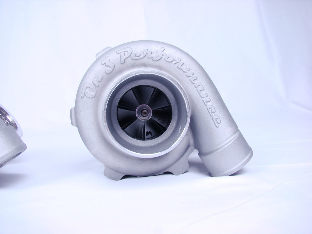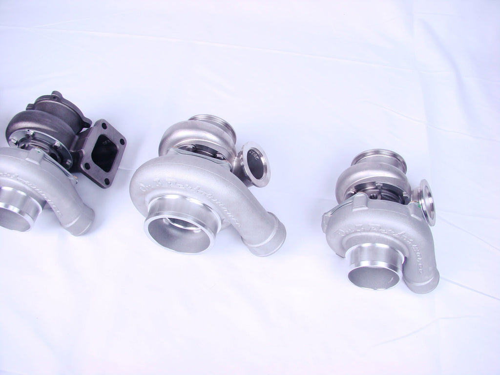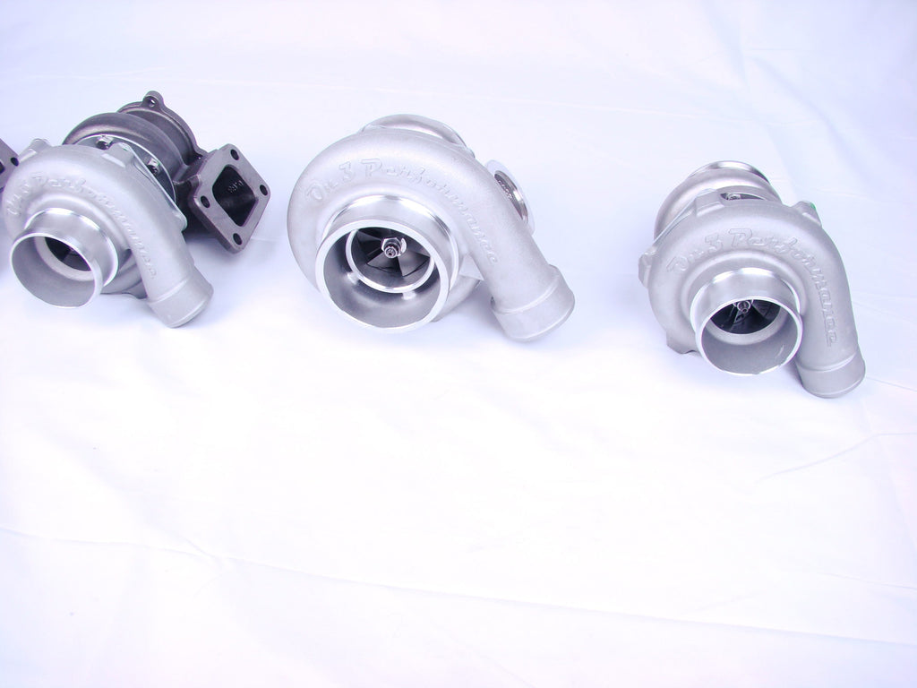 Each of our GT series turbochargers you are looking at are listed up with the Journal bearing CHRA and will come standard with the traditional T3 4 bolt inlet and 3" 4 bolt outlet exhaust housing. Should you decide that you want to upgrade, you can select in our optional upgrade section. Included Standard (Turbo B In Photo): - On 3 Performance GT35 61mm Turbocharger - Compact Cover Compressor Housing, 3" inlet / 2" outlet - Exhaust housing: T3 Traditional 4 Bolt w/ 4 Bolt 3" outlet Should you want any of the optional items show, you must select in the drop down menu or leave us a message when ordering and we can contact you if you are not certain. Easier to make sure your selecting the correct model now than having to return and deal with that process. Turbo Specs