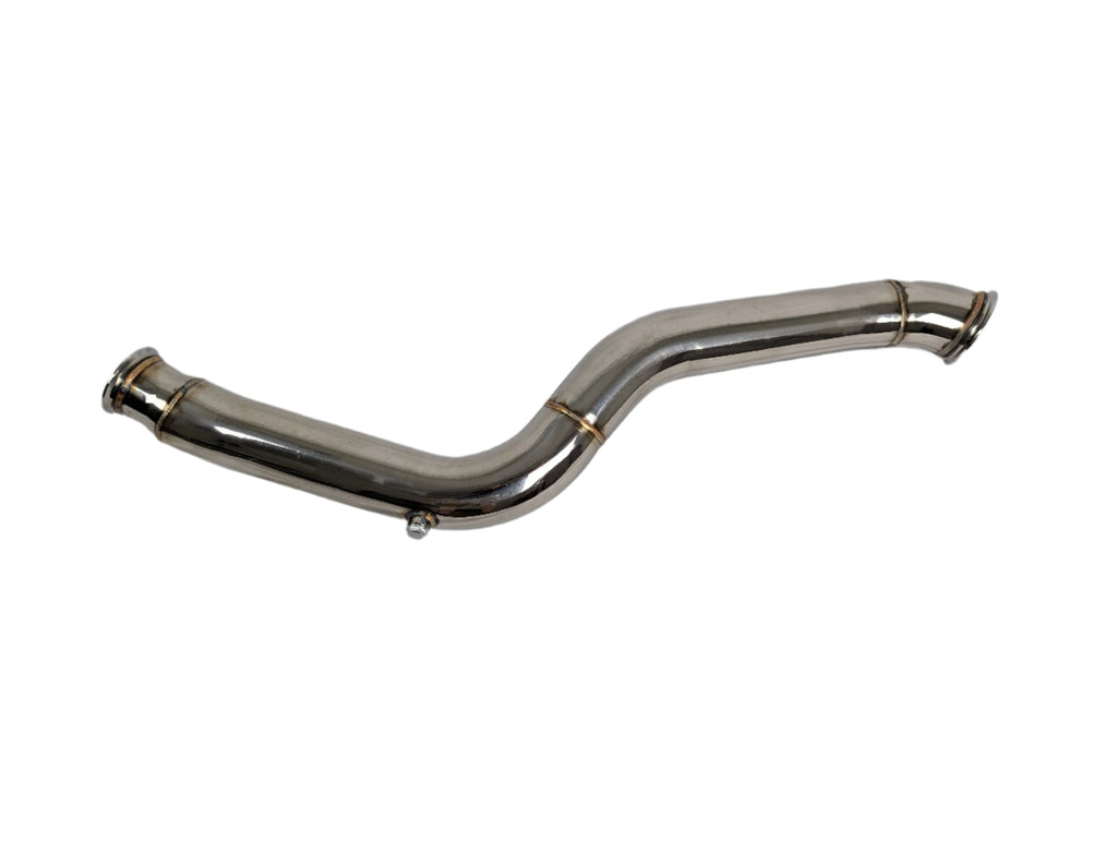 This is the On 3 Performance Fox body 351 single turbo kits downpipe by itself. We often get calls from customers looking for just the downpipe if a previous owner turned it into a hood exit or something of this nature, so we decided to list it separately. This is 304 stainless steel and uses a 3" v-band on the turbo side, and 3.5" v-band on the other end.