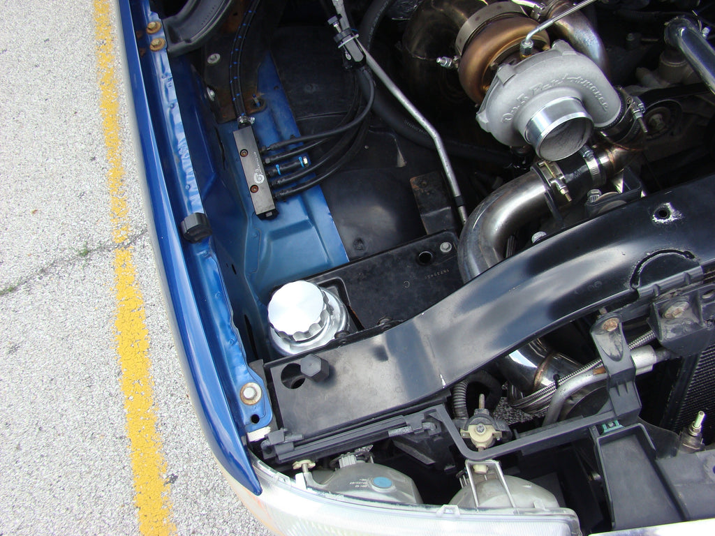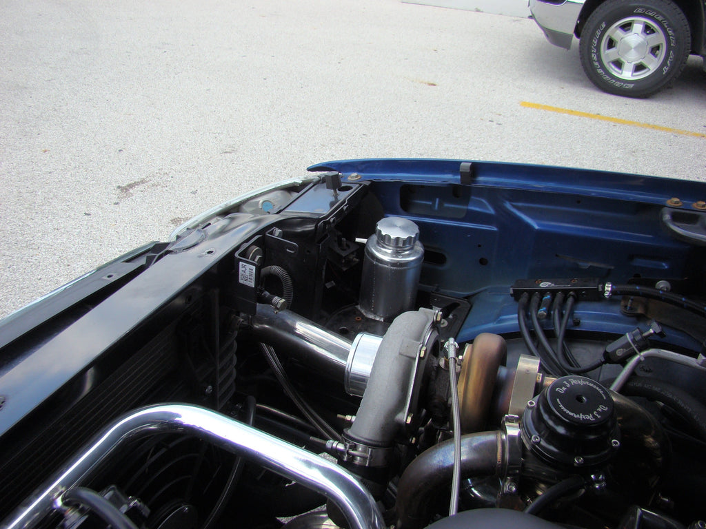 This is a new product we have developed and offered only with our turbo systems previously for our turbo systems. The factory surge tank will be deleted with this kit and clean up the engine bay. What this kit does is add the fill port into the upper radiator hose. Then our new billet aluminum overflow it adapted to that. This way you clean up your engine bay and add some trick billet pieces all at the same time. The upper aluminum radiator hard pipe is a nice touch as well.