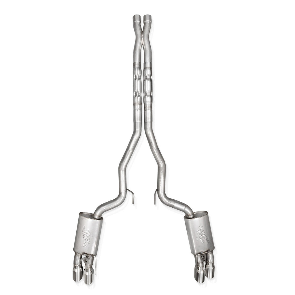 Improve sound and performance on your 2024 Mustang GT with this Legend catback from Stainless Works. We've engineered a drone free aggressive muffler tuned specifically for this improved coyote engine from Ford. In addition to the tuned mufflers, we've also utilized 3" tubing into the crossover for an improvement in flow over the stock exhaust. Finishing the system off we utilized polished quad tips with a double wall conical style. This system is built from corrosion resistant 304 stainless steel and TIG welded at our state of the art facility in Streetsboro, Ohio. As always we stand by our products with a lifetime warranty on material and craftsmanship. Features: * Legend Sound Profile * Quad Tips * X-Pipe Crossover * Performance Connection - Connects to Stainless Works Headers * 304 Stainless construction will last a lifetime * Excellent Fitment For Easy Installation * Smooth mandrel bends optimize exhaust flow * Fully TIG welded for strength and beauty * Not confirmed to fit convertibles