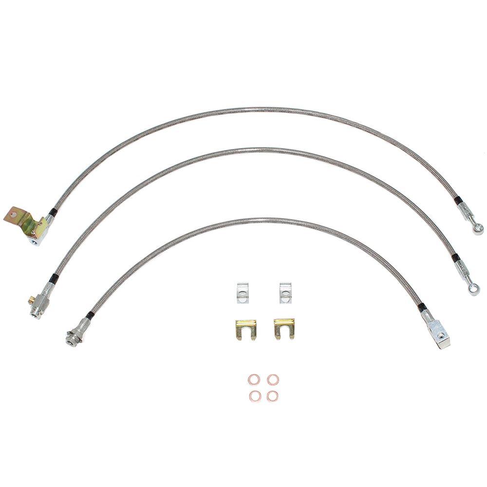 HSK0050SS - 97-01 Dodge Ram 4wd w/ Rear Drum, w/o Load Sensor valve; Complete Brake Hose Kit, 3pcs; Braided Stainless