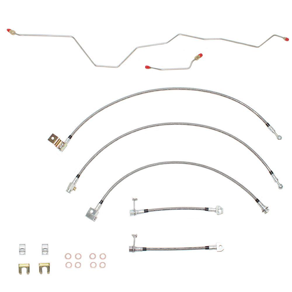 01-02 Dodge Ram 2500/3500 4wd w/ Rear Disc and Automatic Trans; Complete Brake Hose Kit, 5pcs; Braided Stainless