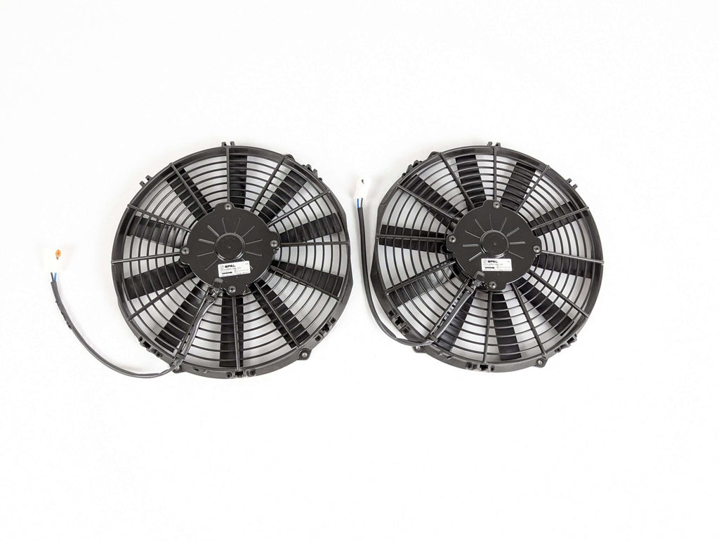 These fans move over 3,000cfm and will ensure to keep your car cool on a hot summer day, even with the A/C running. We have tested this setup on our shop 2011 Mustang 5.0 car, during a 90 degree summer day, the car still remains within spec even with the A/C running.