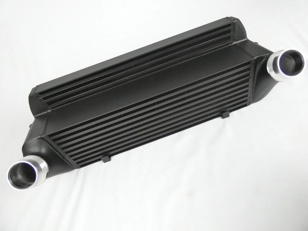Many have asked if we will sell the massive 7" intercooler upgrade that is included with our new top mount single turbo system separately. Well the answer is yes and we are stocked and ready to start shipping the new intercooler upgrades. This is the largest core that we can have built and going to maximize the power potential of your car. These cars have a very inefficient intercooler that is not designed for making power. So as soon as you start turning things up and making more power, your past its point of efficiency. When the cars start getting up into the higher rpm range, the turbos are moving a lot of air and its getting extremely heat soaked. As the temperatures start rising over the pull, the factory computer will start pulling timing and thus the car is losing power and restricted by its own factory hardware. In order to combat this, you are introduced to the On 3 Performance 7" core air to air intercooler. We decided to offer a stepped core design that allows for even more core than our original n54 design. This allows us to get more intercooler in a factory tight fitting location without cutting anything. Our intercooler trumps the factory design in all aspects of size and efficiency. We are able to keep the air much cooler, keep more timing in the car, and result in a cooler charge air temp and allowing the car to make more power, safer. On a turbo car, its all about keeping the air as close to ambient as possible throughout the duration of a pull. This is going to keep the air as cool as it can possibly be without going to an air to water full out race combination. We have tested our intercooler cores past 1200rwhp on specific applications so you can buy with confidence. That is over 1400hp at the crank and we have diesels running our same cores up to and over 100psi. We have proven our products now for almost 10 years, you are able to buy this product with confidence. TESTING DATA: We initially base lined our test car with the factory intercooler at ~16psi of boost. Since then, we upgraded the car to our new 7" Core 335i Intercooler and went back to the dyno for a few more pulls. Not surprised, the IAT's were down and from the start of the pull till the end, we are only getting a 8 degree rise. The pull was starting at 93 degrees and ends right at 101 degrees. This is a HUGE gain and by just keeping the temps down, we were down 1psi at 15# of boost and making 40 MORE HP to the tires, this is due to airflow and timing being able to stay in the engine up top. So if you are pushing the stock turbos or on an upgraded turbo setup, this is a must have. Serious power potential and keeps the IAT's in check.