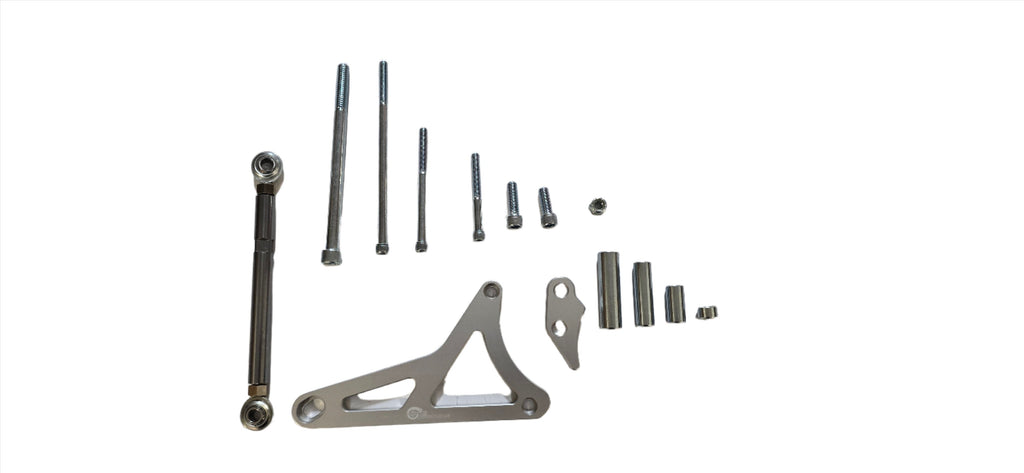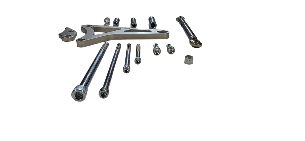 Are you building a custom Mustang 351 swapped 5.8 Foxbody application and the alternator is directly in the way of your turbo placement or some other component. This is designed to eliminate the huge bracket assembly the smog pump and alternator are attached to. This will free up a lot of room and clean up the engine bay tremendously. The actual bracket is machined from a chunk of billet 6061 aluminum with a nice brushed finish. We also developed a tensioner rod which will allow you to manually adjust the load on the belt. This keeps it simple but works the best