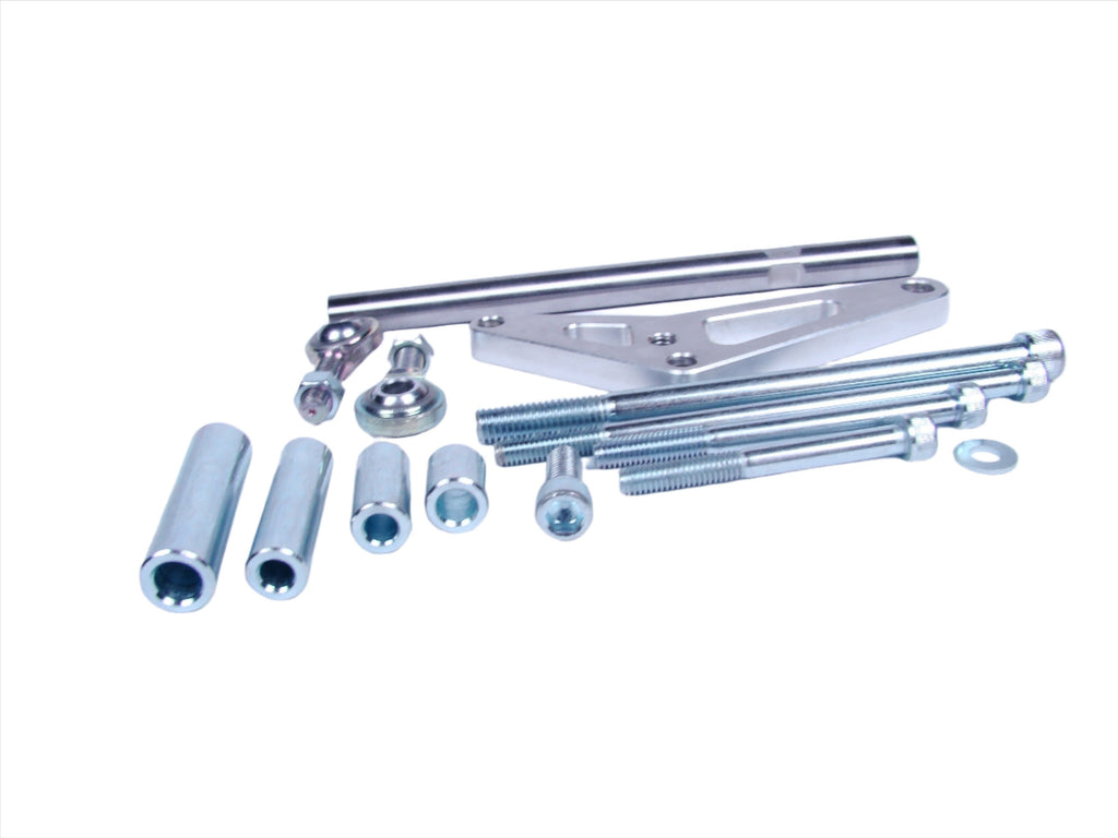 Are you building a custom Mustang 5.0 Foxbody application and the alternator is directly in the way of your turbo placement or some other component. This is designed to eliminate the huge bracket assembly the smog pump and alternator are attached to. This will free up a lot of room and clean up the engine bay tremendously. The actual bracket is machined from a chunk of billet 6061 aluminum with a nice brushed finish. We also developed a tensioner rod which will allow you to manually adjust the load on the belt. This keeps it simple but works the best