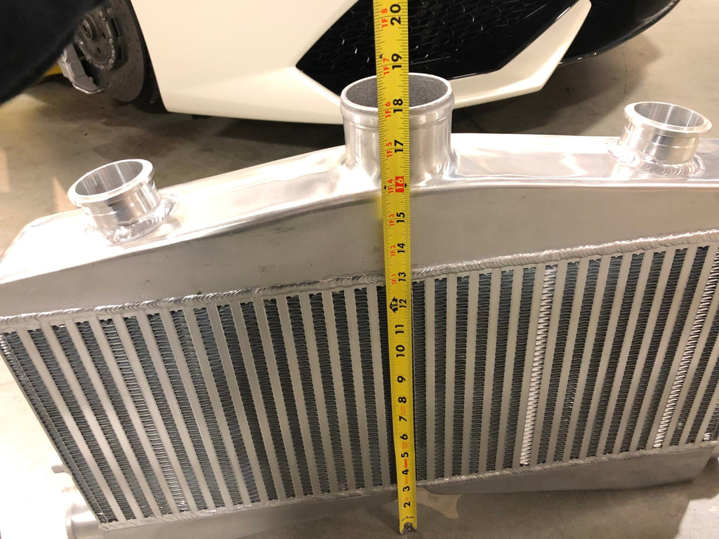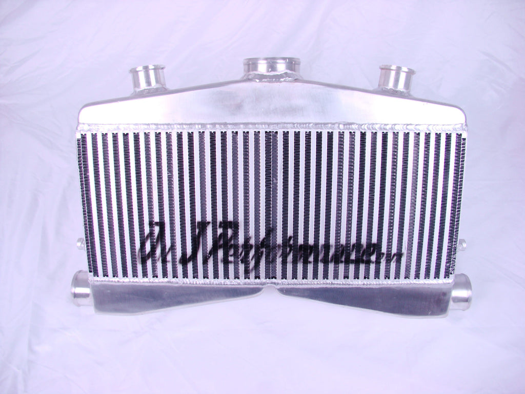 This is our Twin-Turbo Race core intercooler. Rated up to 950HP. High-efficiency bar and plate core. Cast Aluminum end tanks. 2.5" inlets and 3.5" outlet.