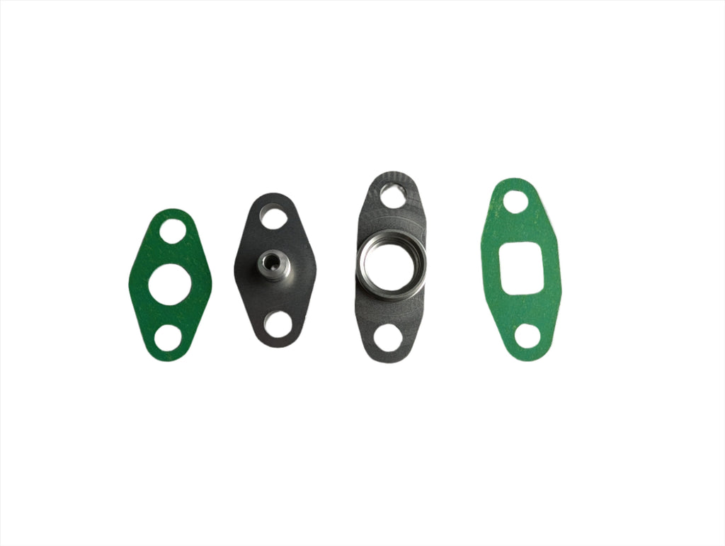 This is the feed and drain plates only for the On 3 T4 series turbochargers (journal bearing only). This will set you up so the turbo will accept the 1/8"npt inlet fitting and a 8an ORB outlet for your drain.