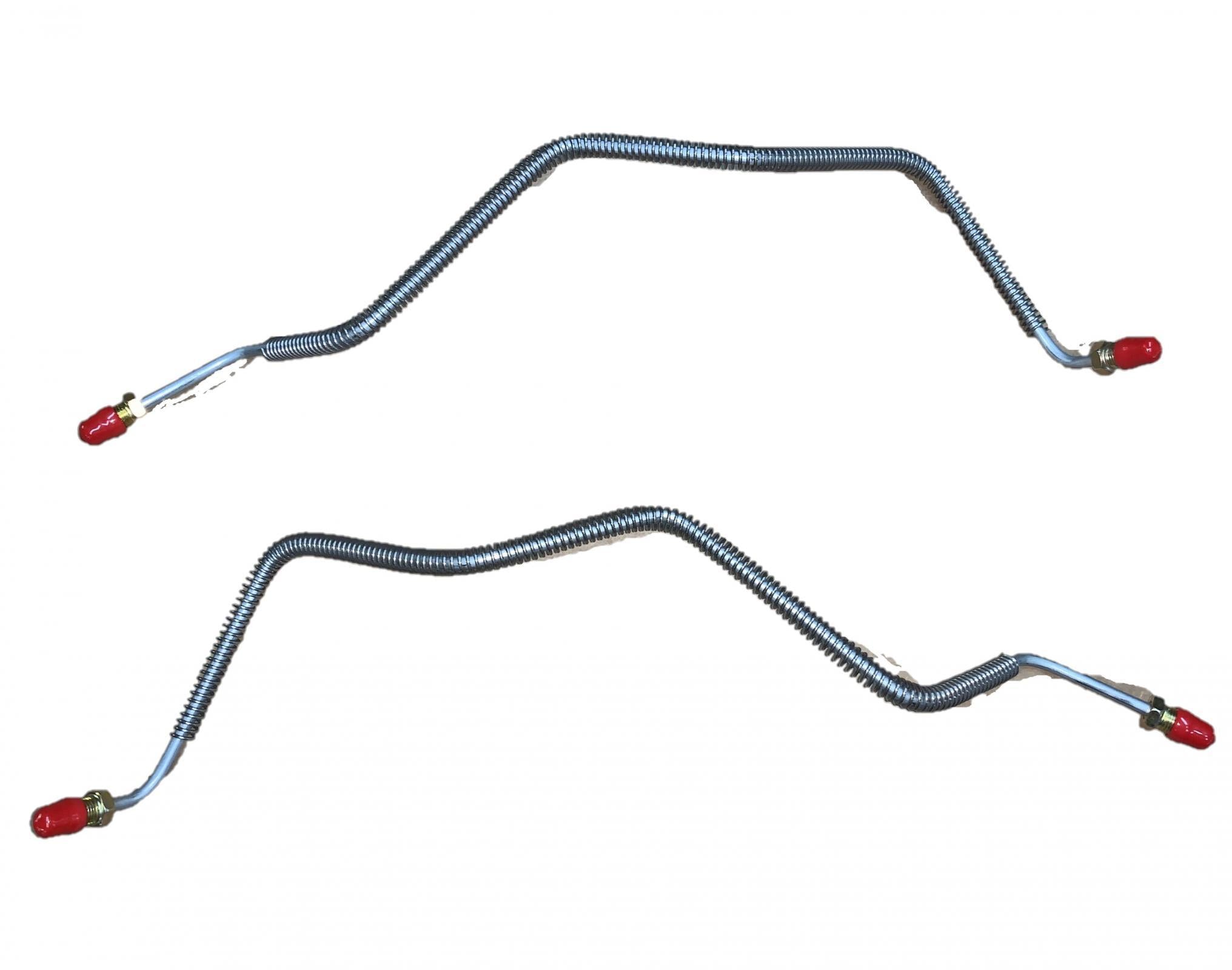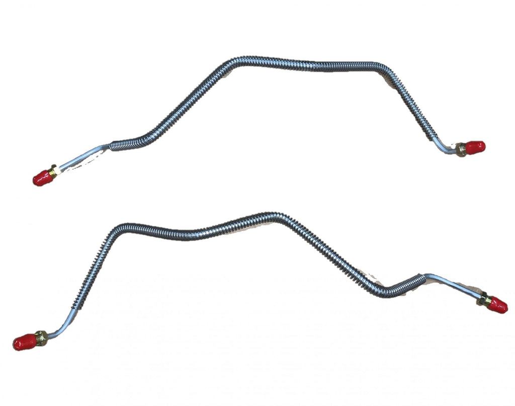 Our Rear Axle Brake Lines are mounted on the axle going to the left and right rear wheels. These will either connect to a caliper hose or thread directly into a wheel cylinder.
